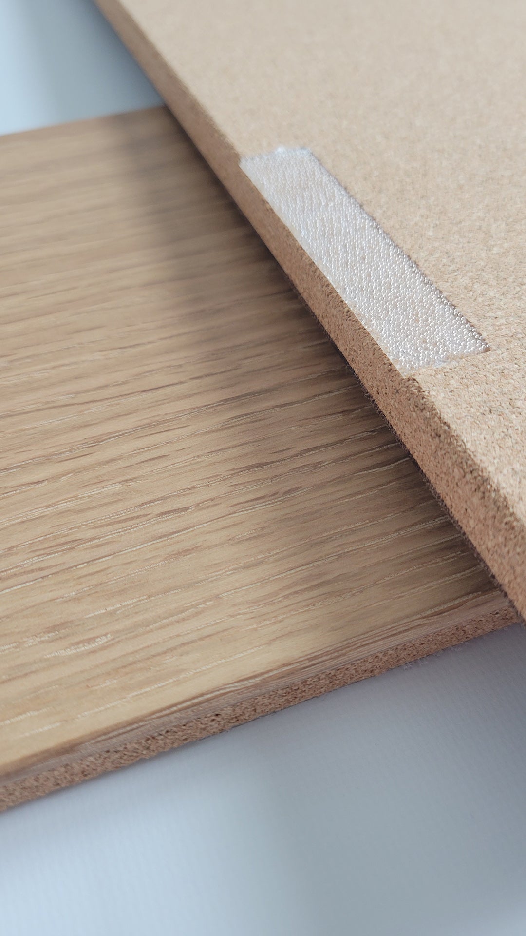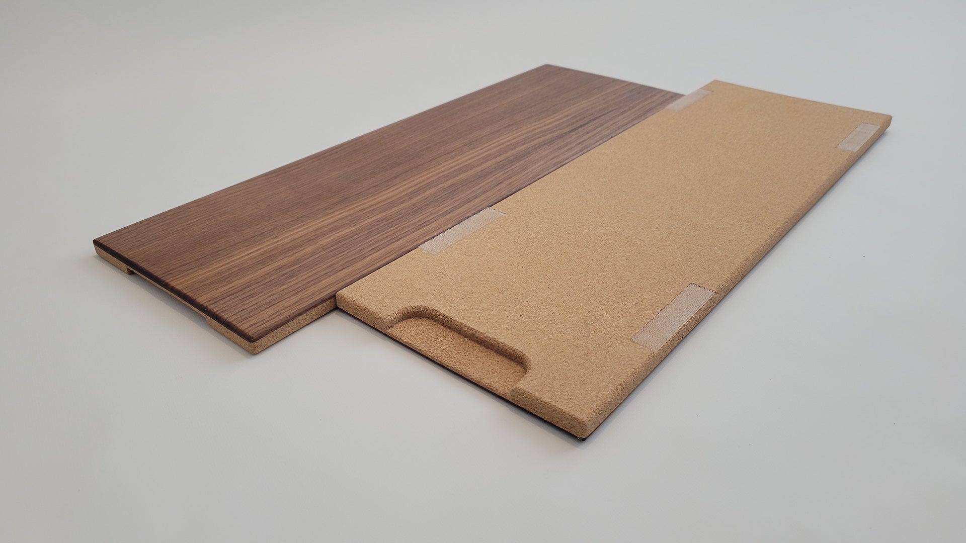 All rear tile faces are clad in a generous layer of renewable, resilient cork that's gentle on walls and on the planet.